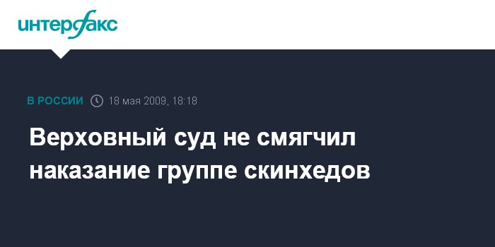 Москва. 18 мая. INTERFAX.RU - Верховный суд России оставил в силе приговор в отношении группы московских скинхедов, главным образом подростков, осужденных за убийства на национальной почве.