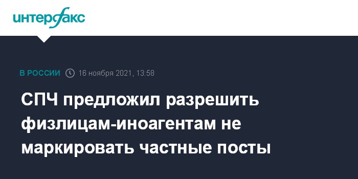 СПЧ предложил разрешить физлицам-иноагентам не маркировать частные посты