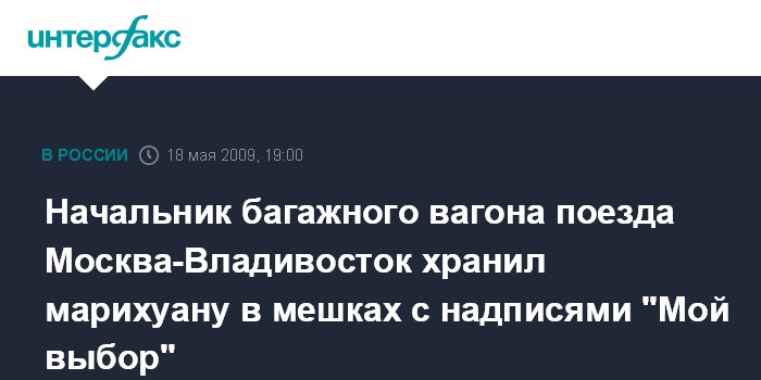 Начальник багажного вагона поезда Москва-Владивосток хранил марихуану в мешках с надписями "Мой выбор"