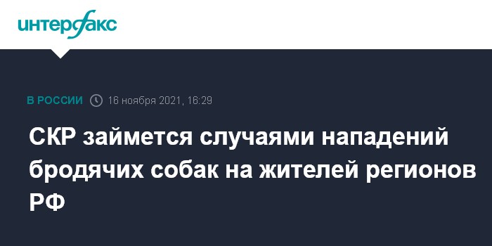 Москва. 16 ноября. INTERFAX.RU - Следственный комитет России проводит проверки обстоятельств нападения бродячих собак на людей в восьми регионах РФ, в том числе со смертельным исходом.