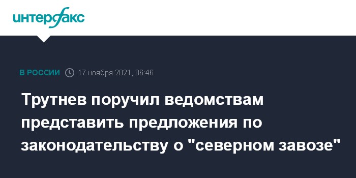 Трутнев поручил ведомствам представить предложения по законодательству о "северном завозе"
