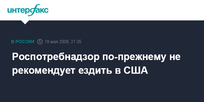 Москва. 18 мая. INTERFAX.RU - Российская санитарная служба сохраняет рекомендации гражданам РФ воздержаться от поездок США, Мексику, Канаду и Испанию из-за сложной ситуации с гриппом H1N1.