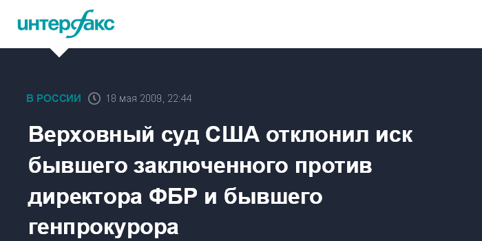 Верховный суд США отклонил иск бывшего заключенного против директора ФБР и бывшего генпрокурора