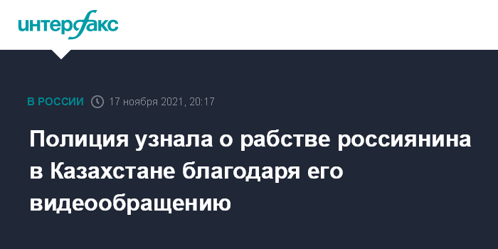 Москва. 17 ноября. INTERFAX.RU - Сотрудники правоохранительных органов получили информацию о незаконном лишении свободы россиянина Алексея Котова на территории Казахстана благодаря видеообращению мужчины на Первый канал.