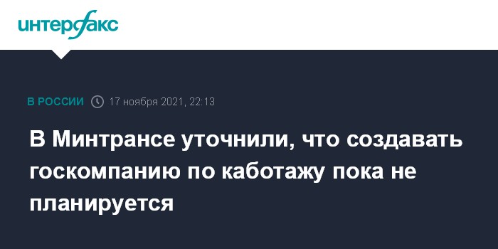 В Минтрансе уточнили, что создавать госкомпанию по каботажу пока не планируется