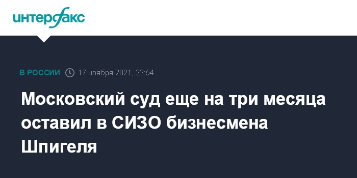 Московский суд еще на три месяца оставил в СИЗО бизнесмена Шпигеля