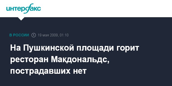 На Пушкинской площади горит ресторан Макдональдс, пострадавших нет