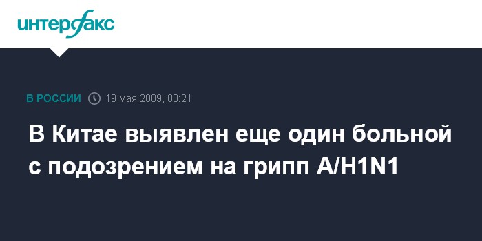 Пекин. 19 мая. ИНТЕРФАКС-КИТАЙ - В городе Гуанчжоу южной китайской провинции Гуандун выявлен больной, который, по предварительным данным, болен гриппом A/H1N1, сообщило в понедельник министерство здравоохранения КНР.