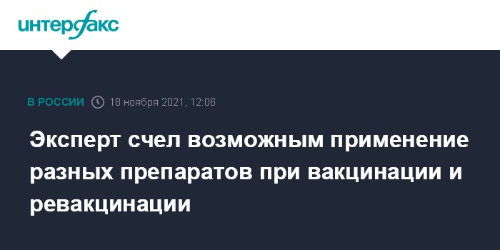 Москва. 18 ноября. INTERFAX.RU - Использование при ревакцинации от COVID-19 не того препарата, который применялся во время первичной прививки, является возможным, сообщил директор федерального научного центра исследования и разработки иммунобиологических препаратов имени Чумакова Айдар Ишмухаметов.
