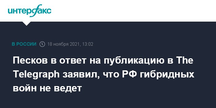 Песков в ответ на публикацию в The Telegraph заявил, что РФ гибридных войн не ведет