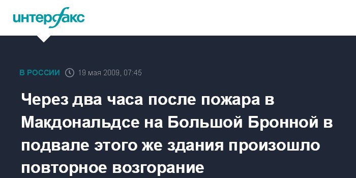 Через два часа после пожара в Макдональдсе на Большой Бронной в подвале этого же здания произошло повторное возгорание