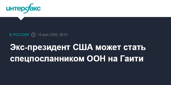 Москва. 19 мая. INTERFAX.RU - Бывший американский президент Билл Клинтон может быть назначен на должность специального посланника ООН в Гаити.