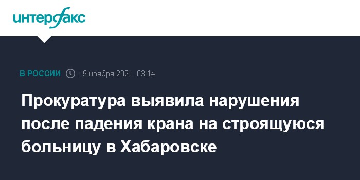 Прокуратура выявила нарушения после падения крана на строящуюся больницу в Хабаровске