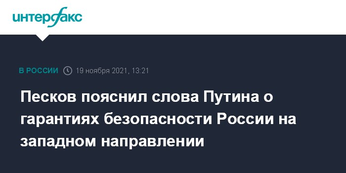 Песков пояснил слова Путина о гарантиях безопасности России на западном направлении