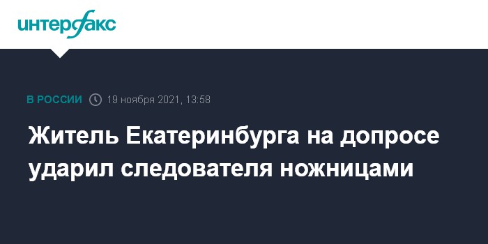 Москва. 19 ноября. INTERFAX.RU - Ранее судимый 34-летний житель Екатеринбурге на допросе несколько раз ранил следователя МВД ножницами, которые лежали на столе. Подозреваемого задержали. На него завели уголовное дело по статье о посягательстве на жизнь лица, осуществляющего предварительное расследование (статья 295 УК), сообщили в областном управлении СК.