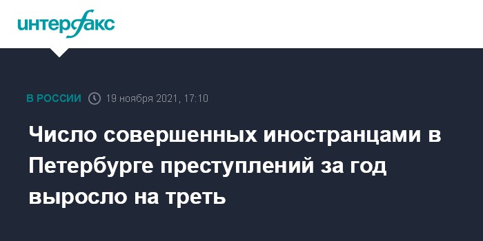 В ответе регионального главка МВД на запрос "Интерфакса" отмечается, что в 2021 году иностранные граждане и лица без гражданства совершили в Петербурге 3 039 преступлений. Из них граждане государств-участников СНГ - 2 479 преступлений.