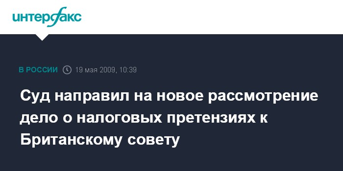 Москва. 19 мая. INTERFAX.RU - Федеральный арбитражный суд Московского округа во вторник отменил постановление Девятого арбитражного апелляционного суда по делу о налоговых претензиях к Британскому совету.