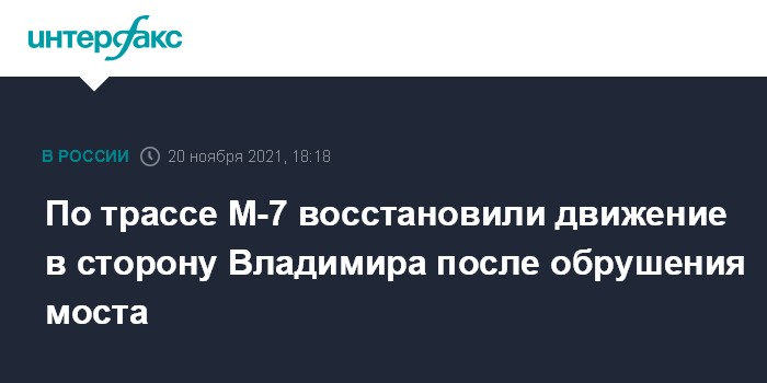 По трассе М-7 восстановили движение в сторону Владимира после обрушения моста