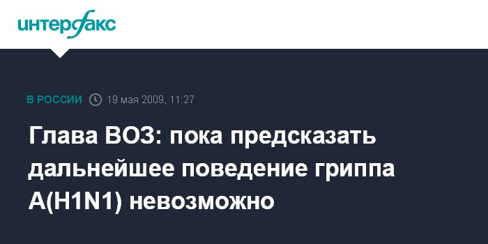 Глава ВОЗ: пока предсказать дальнейшее поведение гриппа A(H1N1) невозможно