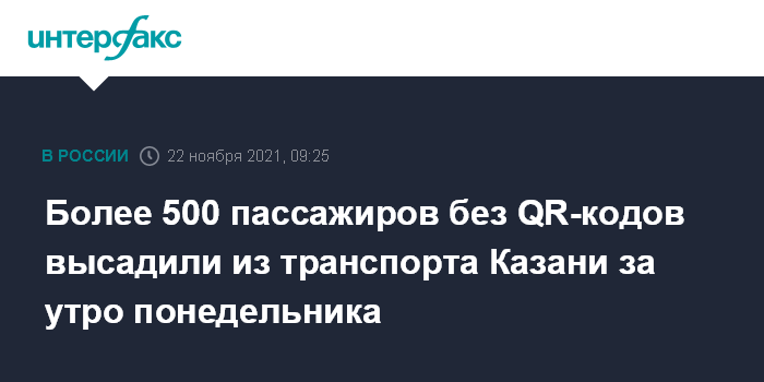 Ранее сообщалось, что с 22 ноября проезд в общественном транспорте Татарстана возможен при наличии QR-кода о прививке, перенесенной болезни, либо справки о медотводе.