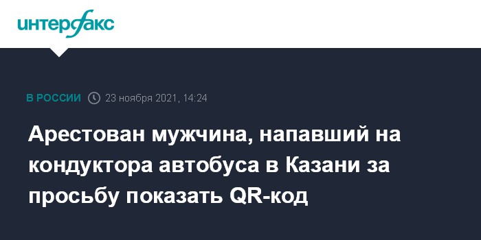 Москва. 23 ноября. INTERFAX.RU - Суд в Казани арестовал пассажира автобуса за нападение на женщину-кондуктора, попросившую предъявить QR-код, сообщил "Интерфаксу" председатель ассоциации автотранспортных предприятий Татарстана Сергей Темляков во вторник.