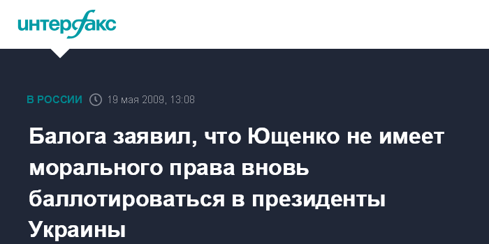 Москва. 19 мая. INTERFAX.RU – Виктор Балога назвал главной причиной своей отставки с поста главы секретариата президента Украины категорическое несогласие с решением Виктора Ющенко во второй раз баллотироваться на пост главы государства.