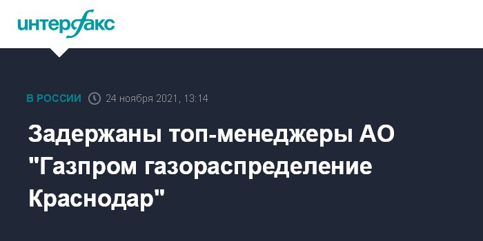 Москва. 24 ноября. INTERFAX.RU - Топ-менеджеры АО "Газпром газораспределение Краснодар", включая гендиректора Алексея Руднева, задержаны по подозрению в получении от бизнесменов 20 млн рублей за подключение объектов к газовым сетям. Об этом сообщила официальный представитель Следственного комитета (СК) Светлана Петренко.