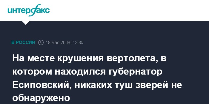 Москва. 19 мая. INTERFAX.RU – В Следственном комитете при прокуратуре опровергли информацию о том, что на месте крушения вертолета, в котором находился губернатор Иркутской области Игорь Есиповский, были обнаружены туши животных.