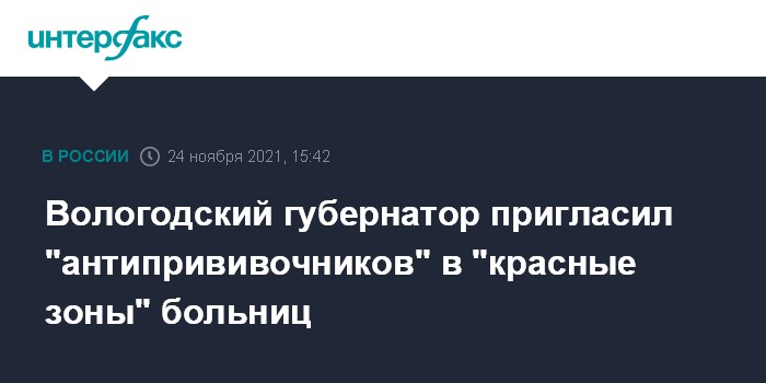 Москва. 24 ноября. INTERFAX.RU - Глава Вологодской области Олег Кувшинников поддержал послание российских врачей, работающих в коронавирусных моногоспиталях к известным противникам вакцинации.