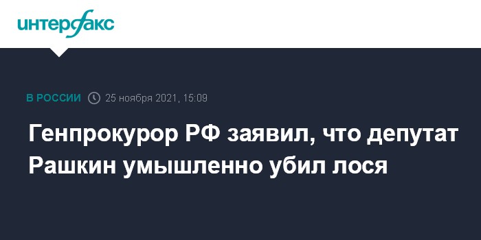Генпрокурор РФ заявил, что депутат Рашкин умышленно убил лося