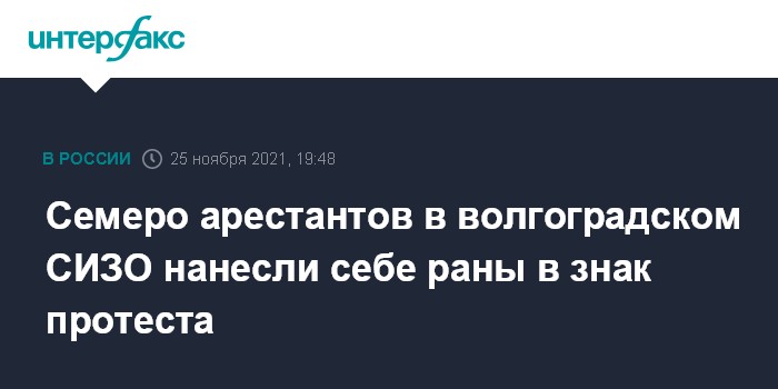 Москва. 25 ноября. INTERFAX.RU - Несколько подозреваемых и обвиняемых нанесли себе увечья в СИЗО №4 Волгоградской области, сообщает пресс-служба УФСИН России по региону.