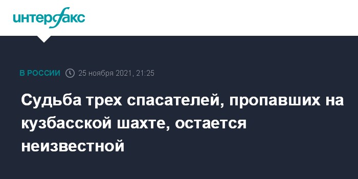 Москва. 25 ноября. INTERFAX.RU - Судьба троих спасателей, отправившихся на поиски горняков в шахте "Листвяжная", остается неизвестной, сообщает пресс-служба МЧС РФ.