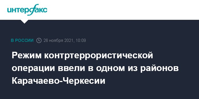 Москва. 26 ноября. INTERFAX.RU - Режим контртеррористической операции введен 26 ноября в Карачаевском районе Карачаево-Черкесии, где ищут двух вооруженных мужчин, планировавших теракт, сообщили "Интерфаксу" в УФСБ России по КЧР.