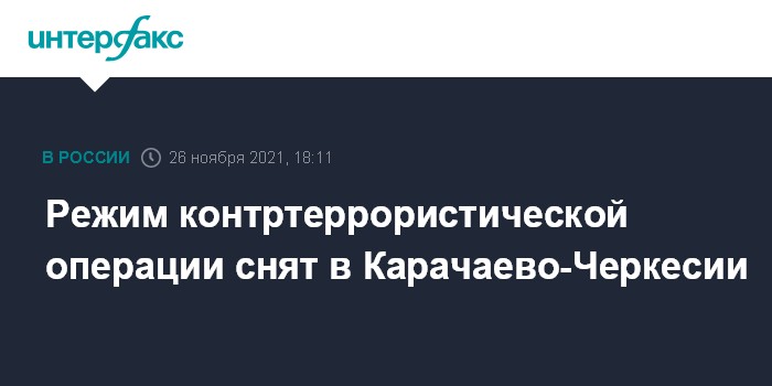 Москва. 26 ноября. INTERFAX.RU - Руководство управления ФСБ по Карачаево-Черкесии сняло правовой режим контртеррористической операции в Карачаевском районе, где в пятницу ликвидированы двое боевиков, планировавших теракт, сообщили "Интерфаксу" в УФСБ России по КЧР.