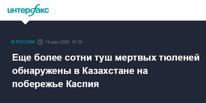 Москва. 19 мая. INTERFAX.RU - На побережье Каспийского моря в Мангистауской области Казахстана обнаружены еще 137 туш погибших тюленей.