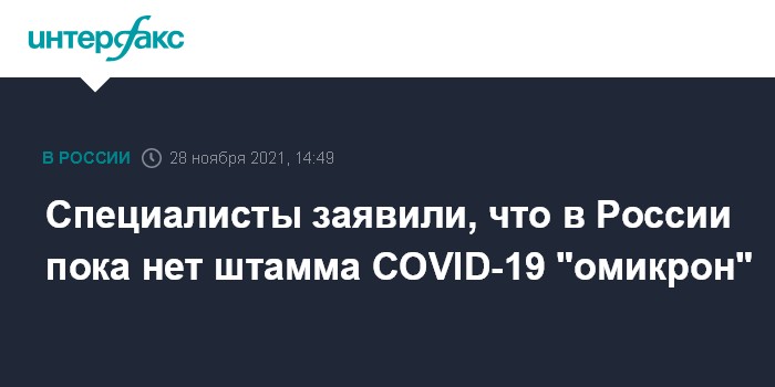 Москва. 28 ноября. INTERFAX.RU - В РФ пока нет штамма коронавируса "омикрон", сообщил руководитель научной группы разработки новых методов диагностики на основе технологий секвенирования ЦНИИ эпидемиологии Роспотребнадзора Камиль Хафизов.