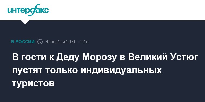 Москва. 29 ноября. INTERFAX.RU - Роспотребнадзор Вологодской области рекомендовал на новогодние праздники и Рождество, как и в прошлом году, запретить пускать в Вотчину Деда Мороза в Великом Устюге организованные группы детей из-за пандемии, сообщила пресс-служба правительства региона.