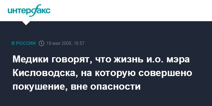 Медики говорят, что жизнь и.о. мэра Кисловодска, на которую совершено покушение, вне опасности