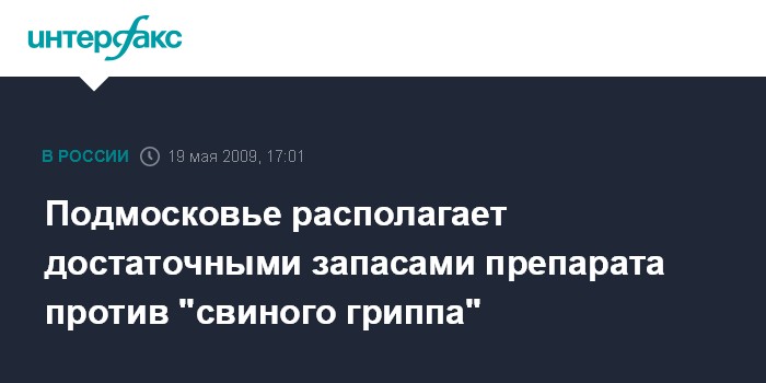 Москва. 19 мая. INTERFAX.RU - В Подмосковье заготовлено около 1800 доз препарата "Тамифлю", эффективного против вируса свиного гриппа, рассказал "Интерфаксу" во вторник министр здравоохранения региона Владимир Семенов.