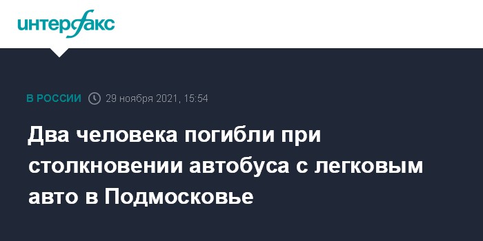 Москва. 29 ноября. INTERFAX.RU - Автобус столкнулся с легковушкой на трассе в подмосковном Раменском округе, два человека погибли, сообщил "Интерфаксу" информированный источник.