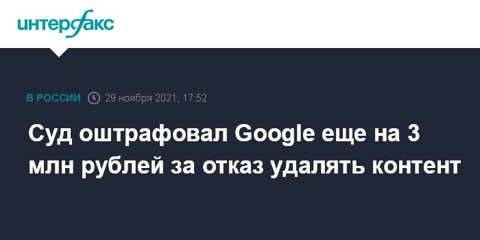 Суд оштрафовал Google еще на 3 млн рублей за отказ удалять контент