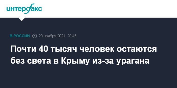 Почти 40 тысяч человек остаются без света в Крыму из-за урагана