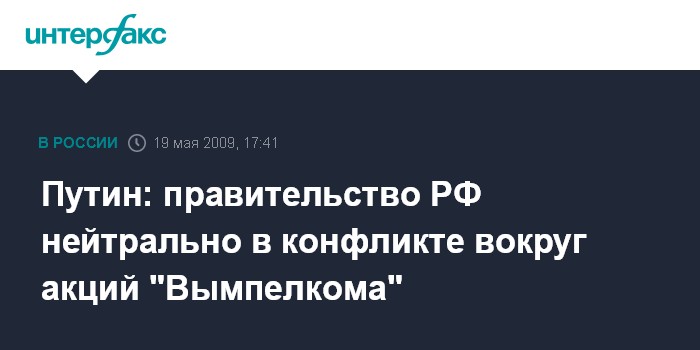Путин: правительство РФ нейтрально в конфликте вокруг акций "Вымпелкома"