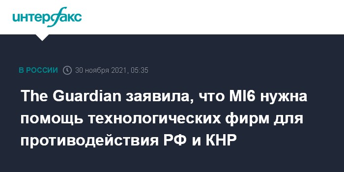 The Guardian заявила, что MI6 нужна помощь технологических фирм для противодействия РФ и КНР
