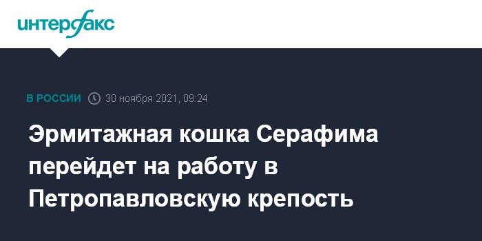 Эрмитажная кошка Серафима перейдет на работу в Петропавловскую крепость