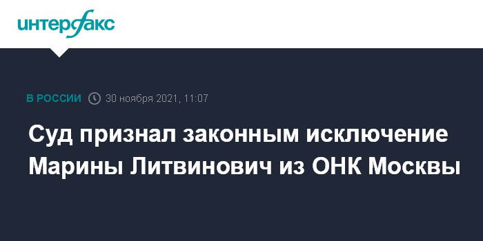 Литвинович на это заявила "Интерфаксу", что решение исключить ее из ОНК было политическим, правовых оснований для этого на не видит.