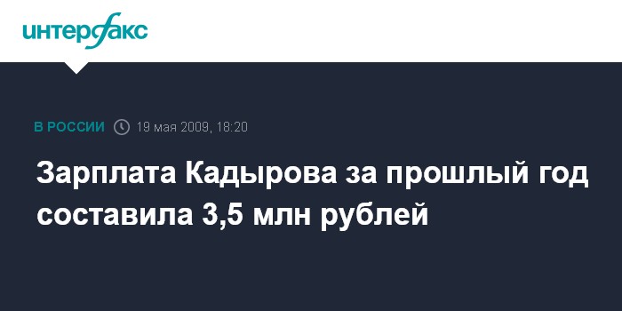 "Заработная плата президента Чеченской республики в 2008 году составила 3 млн 422 тыс. рублей", - подчеркнул собеседник агентства.