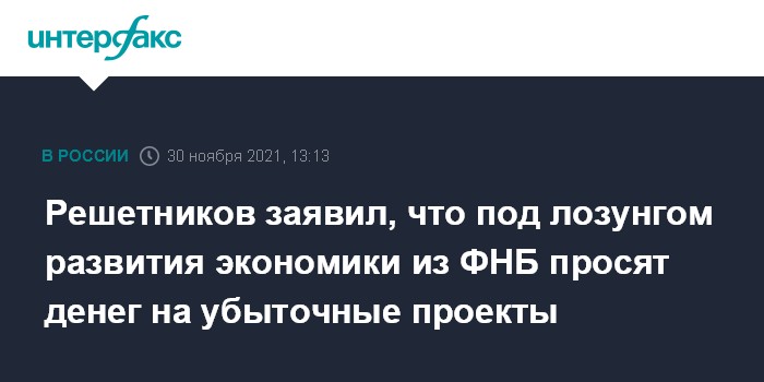Решетников заявил, что под лозунгом развития экономики из ФНБ просят денег на убыточные проекты