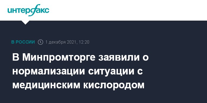 Как сообщили в Минпромторге "Интерфаксу" в среду, число регионов с напряженной ситуацией по медицинскому кислороду в настоящее время снижается. "Мы с осторожностью можем сказать, что ситуация постепенно начинает стабилизироваться. Снижается число регионов, где, по нашим данным, сохраняется напряженная ситуация", - сказали в министерстве, отвечая на запрос агентства.