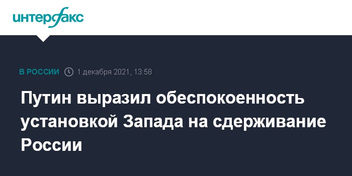 Москва. 1 декабря. INTERFAX.RU - Президент Владимир Путин заявил, что обеспокоен тем, как ведут себя по отношению к России ее западные партнеры, пытающиеся сдерживать развитие РФ.
